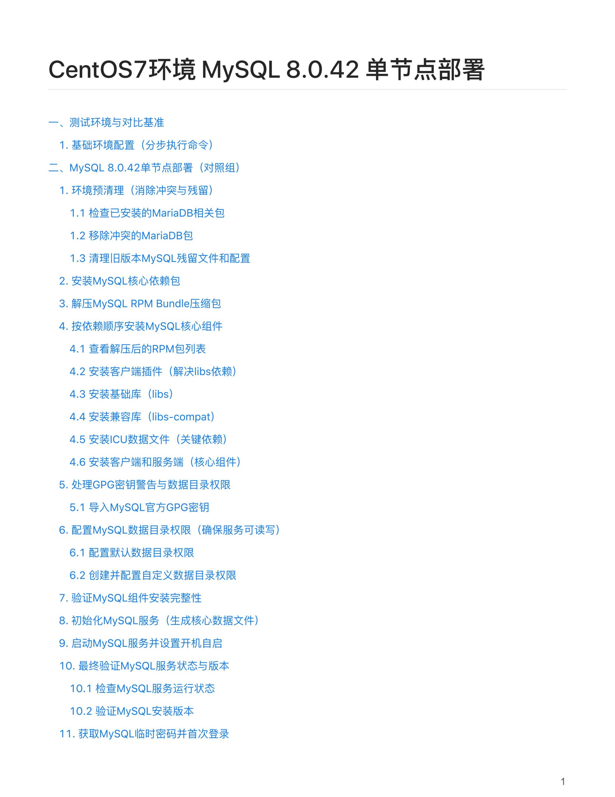 今天推荐的《CentOS7环境 MySQL 8.0.42 单节点部署》 👇文末附地址,可直接拉至尾部下载文档。 部分精彩 内容比较多,不在此一一展示 想了解该报告详情,可通过下方扫码关注后 回复“资料2” 获取报告下载链接