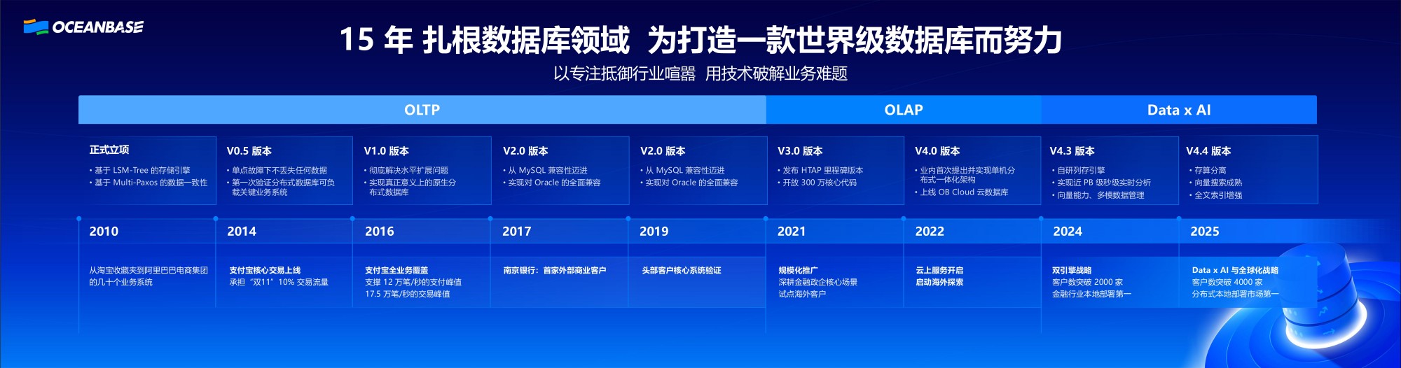 专注的力量——OceanBase 的过去、现在和未来_杨冰_OceanBase 👇文末附获取方式,可直接拉至尾部下载文档。 本篇报告内容部分提取👇 内容比较多,不在此一一展示 想了解该报告详情,可通过下方扫码关注后 回复“数据库4” 获取报告下载链接