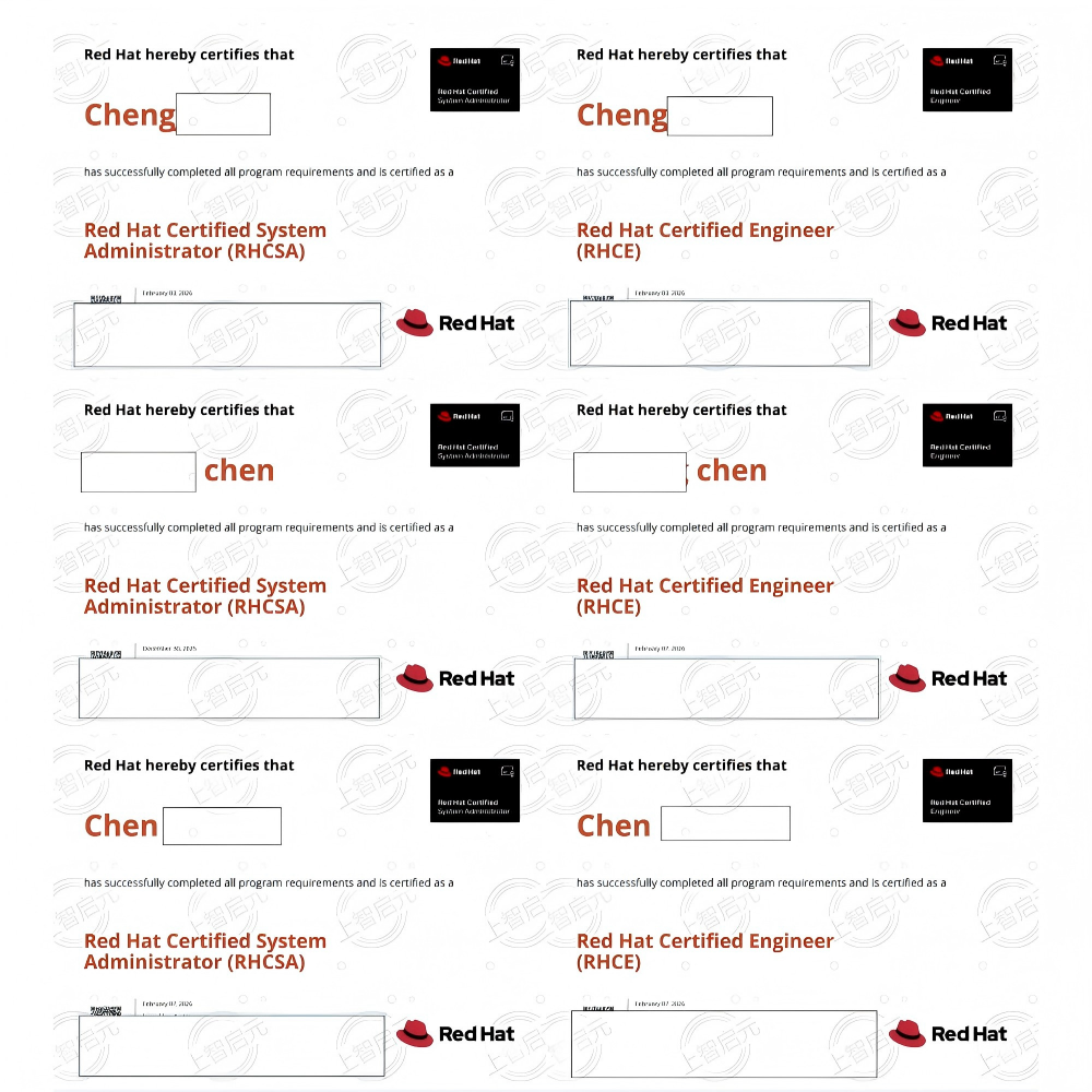 以下是部分学员RHCSA 和 RHCE 证书展示👇