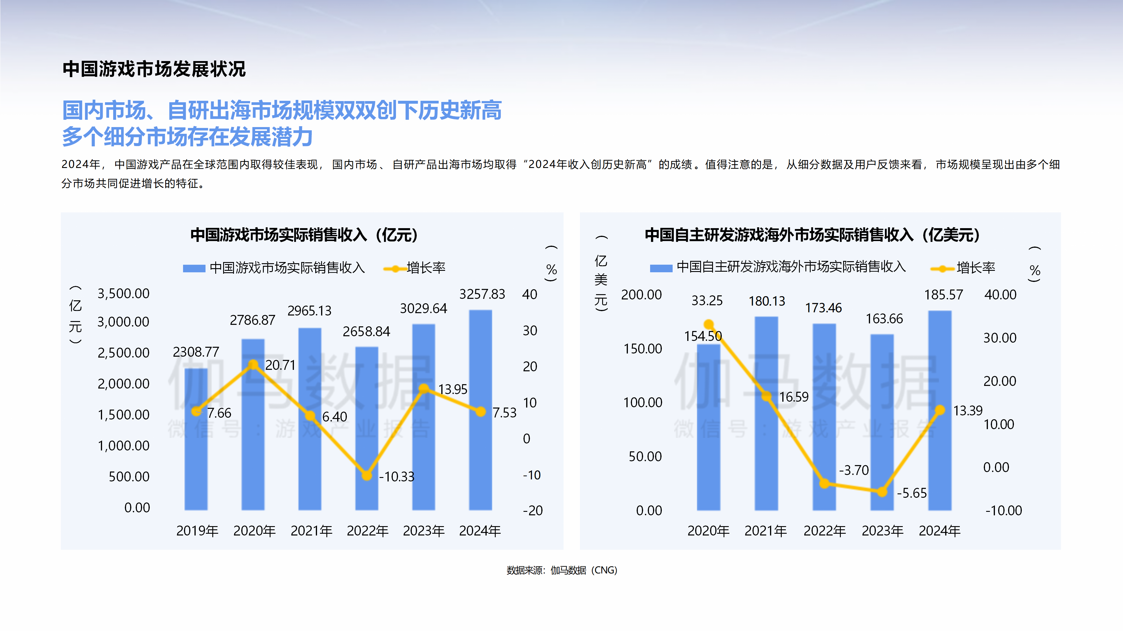 伽马数据2025中国游戏产业趋势及潜力分析报告42页 👇文末附获取方式,可直接拉至尾部下载文档 本篇报告内容部分提取👇 内容较多,不在此一一展示 想了解该报告超高清详情,可通过下方扫码关注后 回复“游戏发展36” 获取报告下载链接