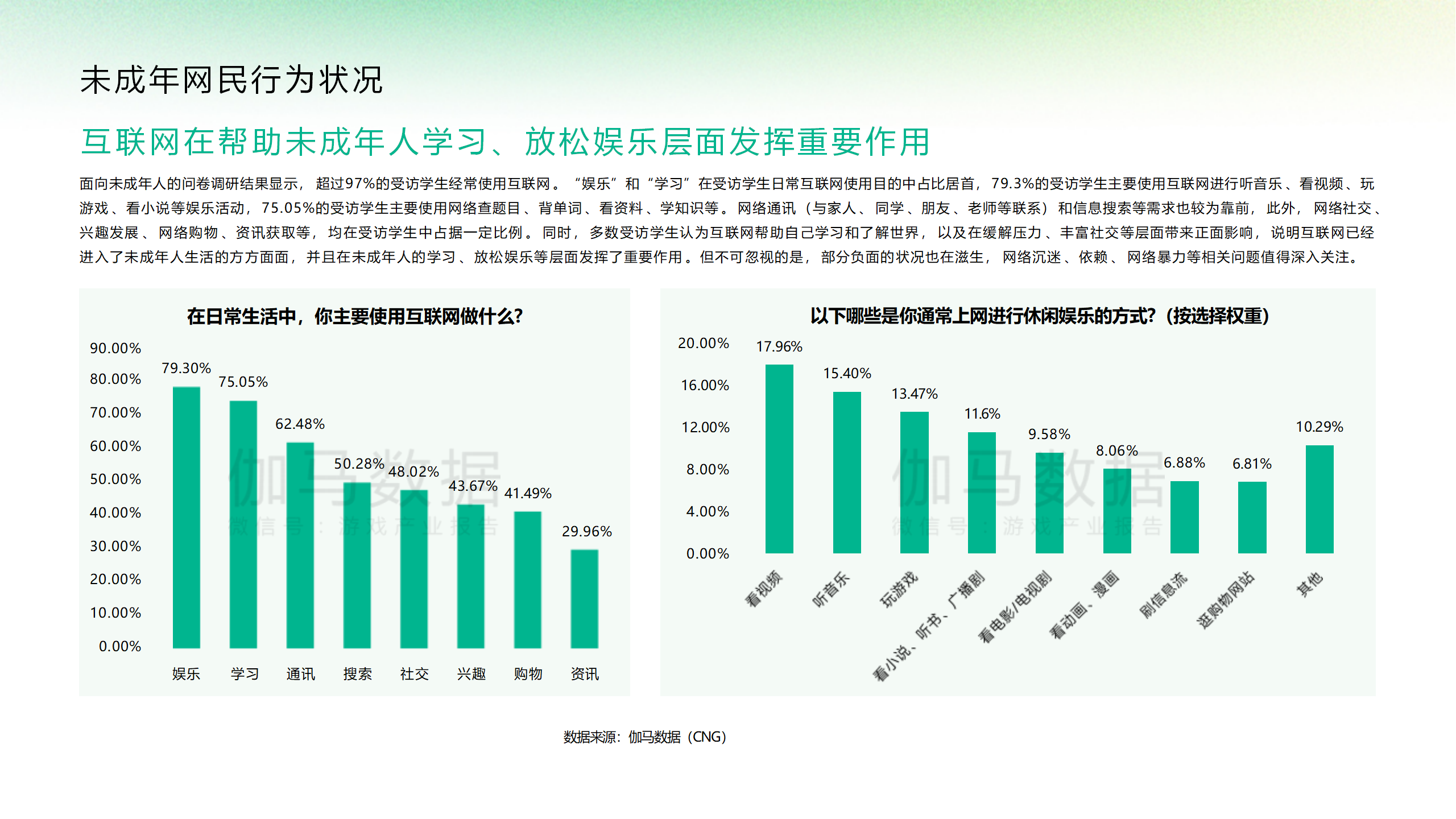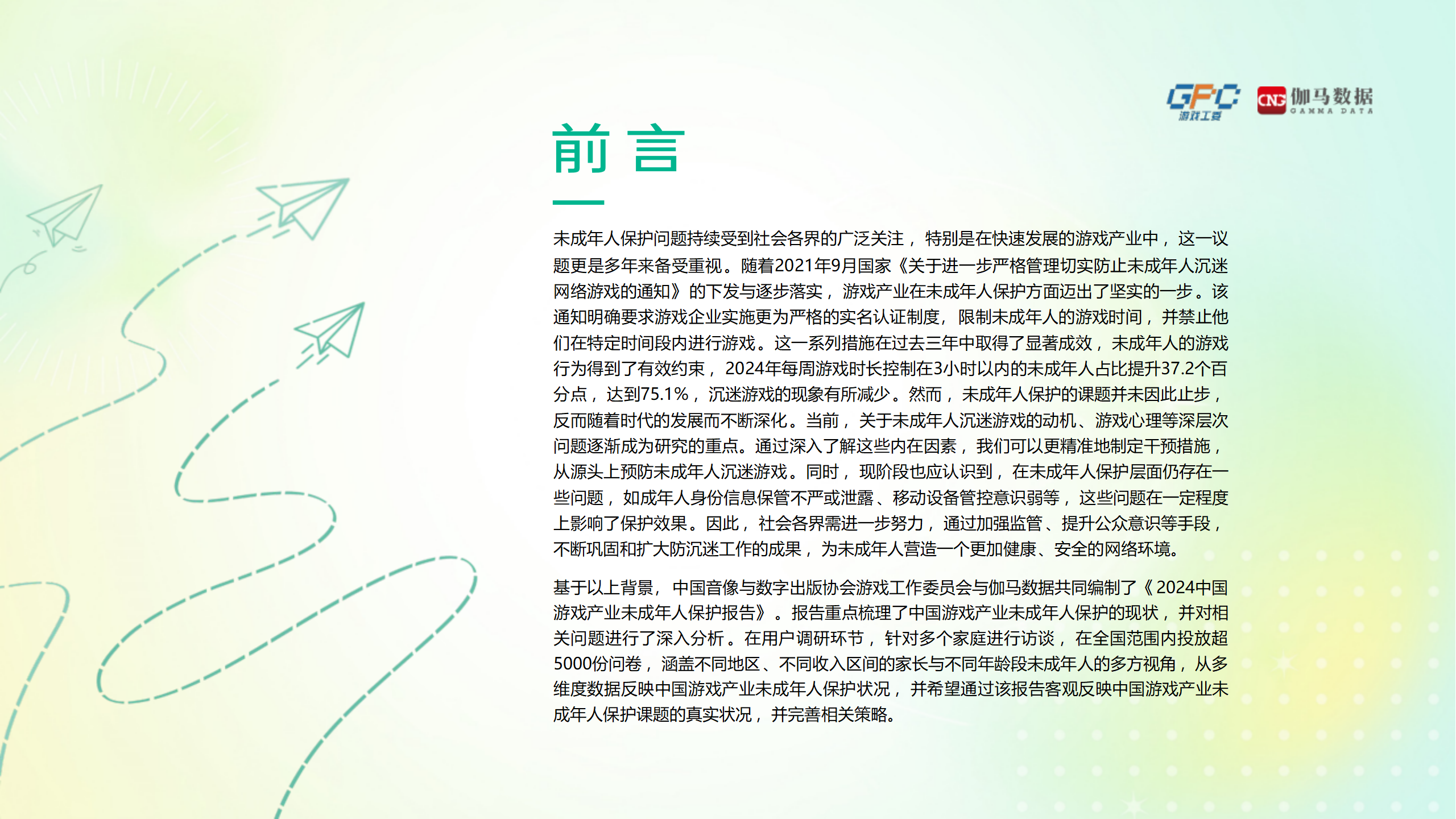 伽马数据2024中国游戏产业未成年人保护报告40页 👇文末附获取方式,可直接拉至尾部下载文档 本篇报告内容部分提取👇 内容较多,不在此一一展示 想了解该报告超高清详情,可通过下方扫码关注后 回复“游戏市场325” 获取报告下载链接