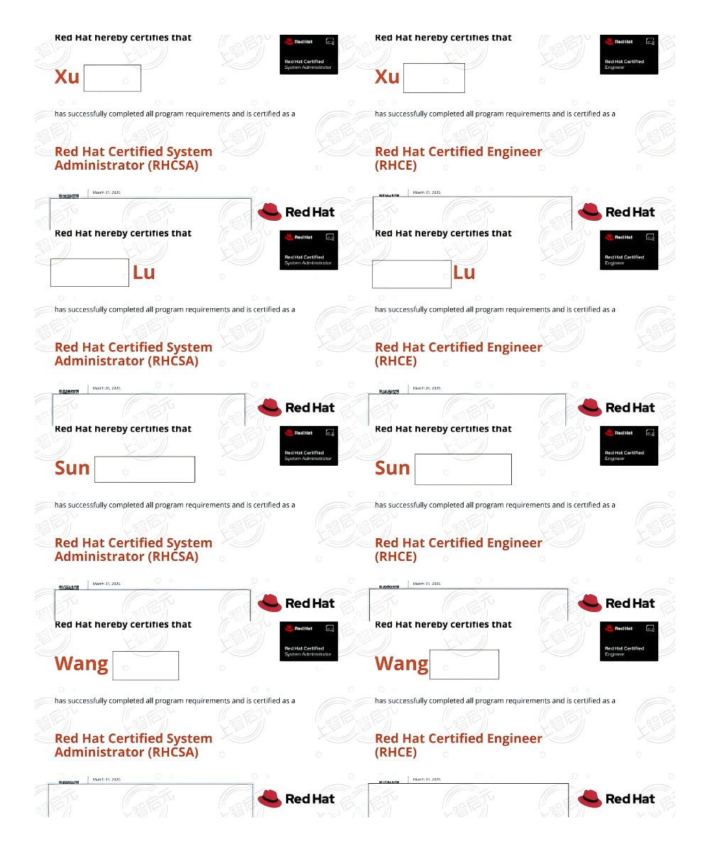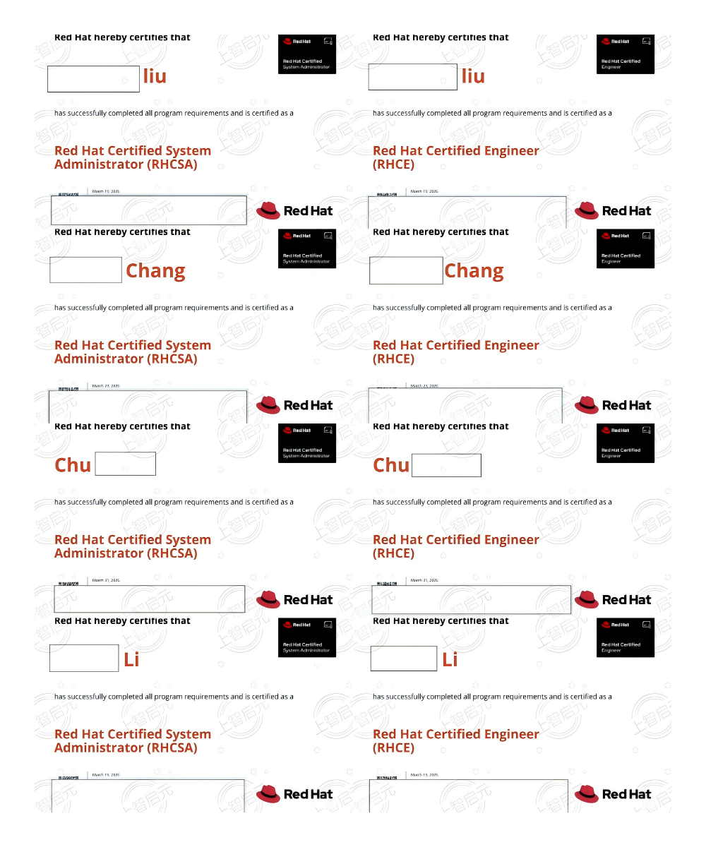 以下是部分学员RHCSA 和 RHCE 证书展示👇